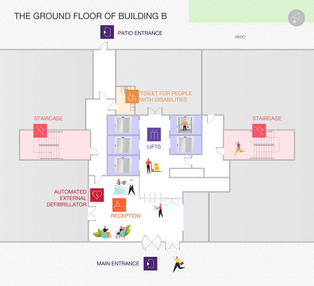 In life-threatening situations, remember that you can find Automated External Defibrillators in Quattro’s Buildings A, B, C and D. In each building, one is located on the ground floor, near the reception. Remember that security staff is trained to use it.